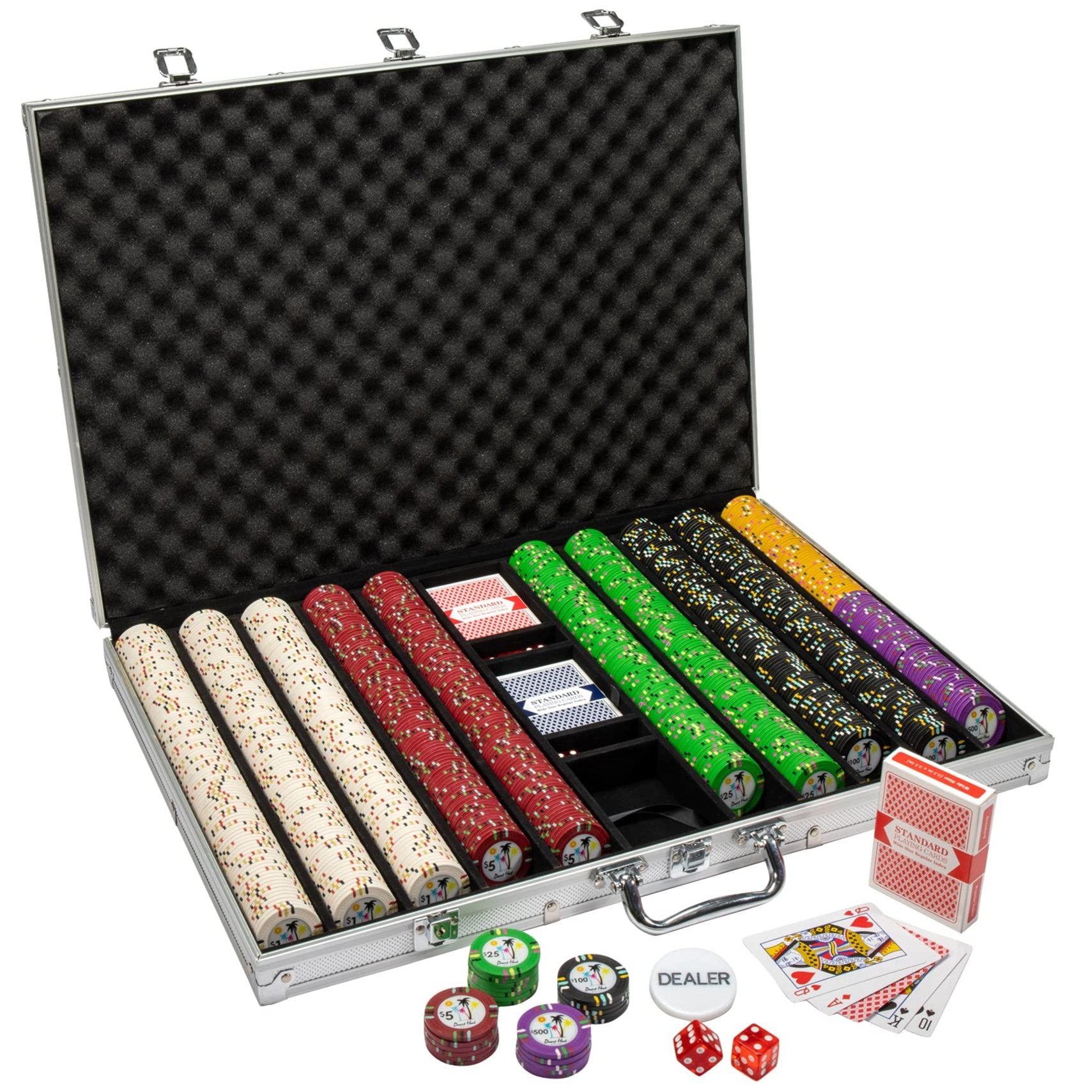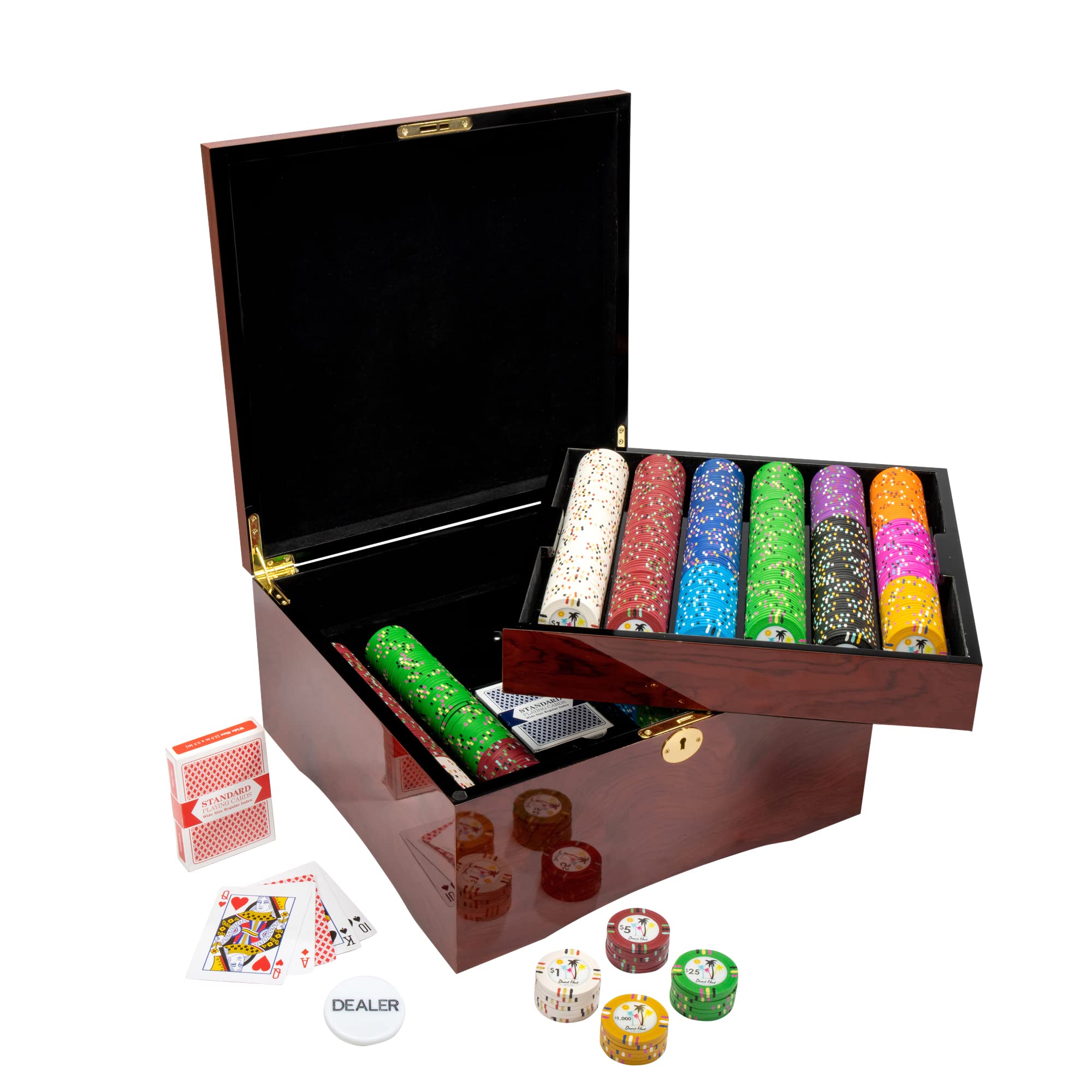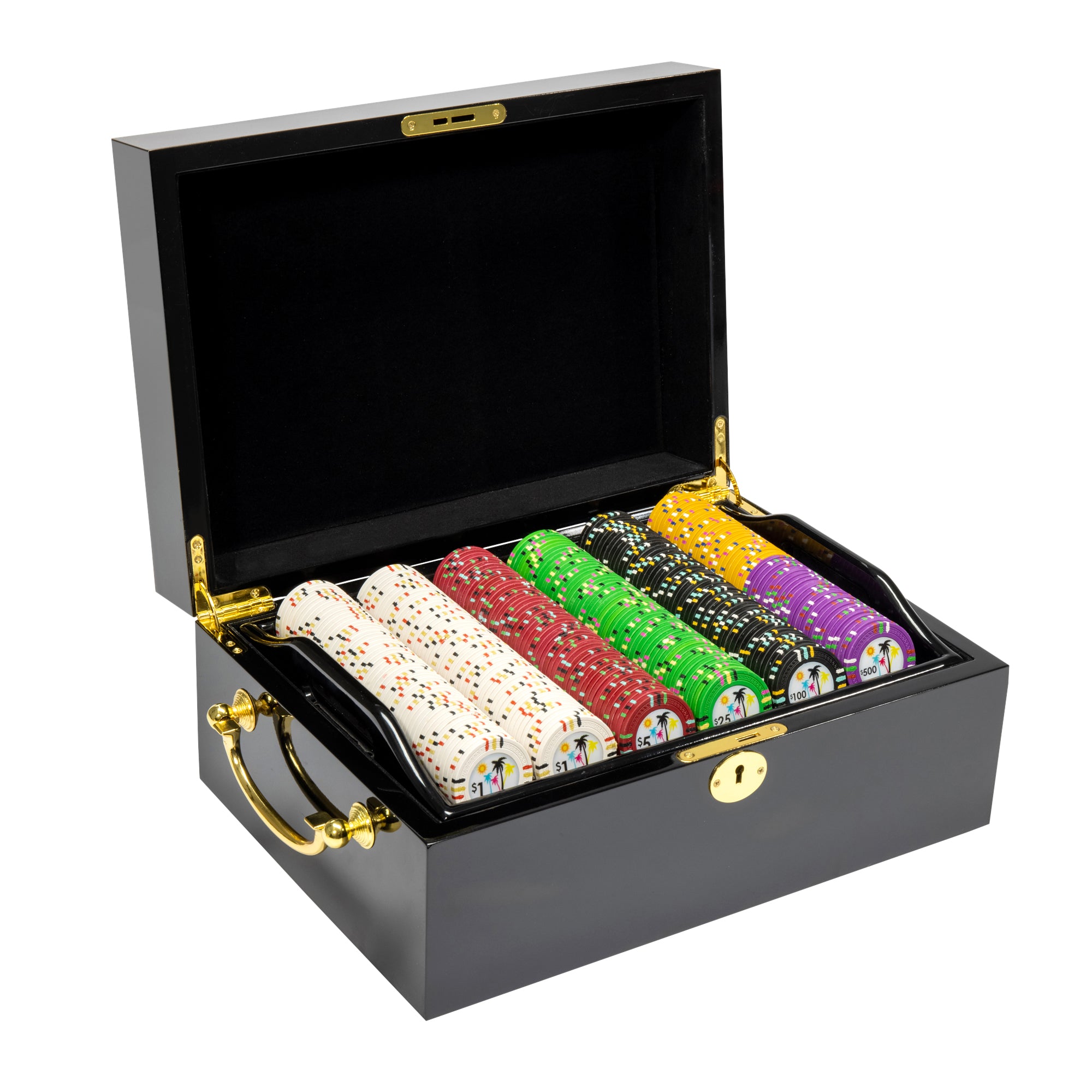 The Monte Carlo Poker Club chip aspires to be as dazzling and opulent as its namesake casino in Monaco. Each 13.5-gram Monte Carlo chip is a luxurious clay composite pressed with a colorful tri-tone, triple crown edge pattern. The inlay is ringed with a glittery, golden border of champagne bubbles and features the cash denomination.